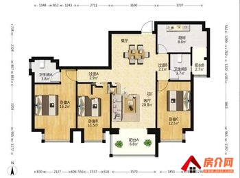 1.3房X厅,南北向全明,空间利用合理:卧室X平方,空间大,小厅X平方,带阳台X平方,卫生间、厨房都独立!