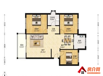 1、户型:标准3室2厅1厨1卫