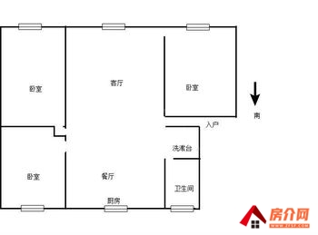 2、户型/房型:3室2厅1厨1卫,朝向:南北向