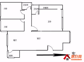 2、户型/房型:3室2厅1厨2卫,朝向:东西向