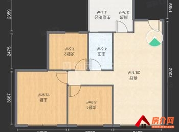 【户型与朝向】3室2厅1卫,西北朝向,采光充足。