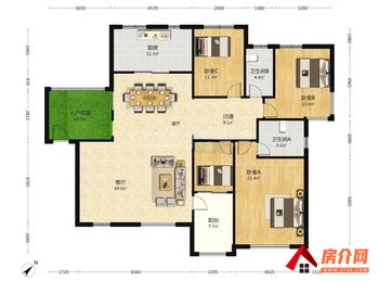 2、房屋在7楼,精装4房南北176.6平;