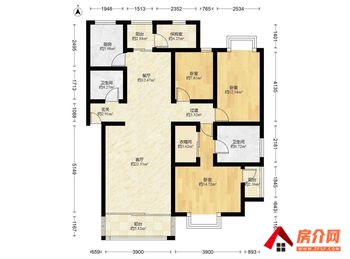 2、房屋在5楼,精装4房南北通透;