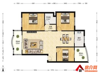 1.3房X厅,南北向全明,空间利用合理:卧室X平方,空间大,小厅X平方,带阳台X平方,卫生间、厨房都独立!